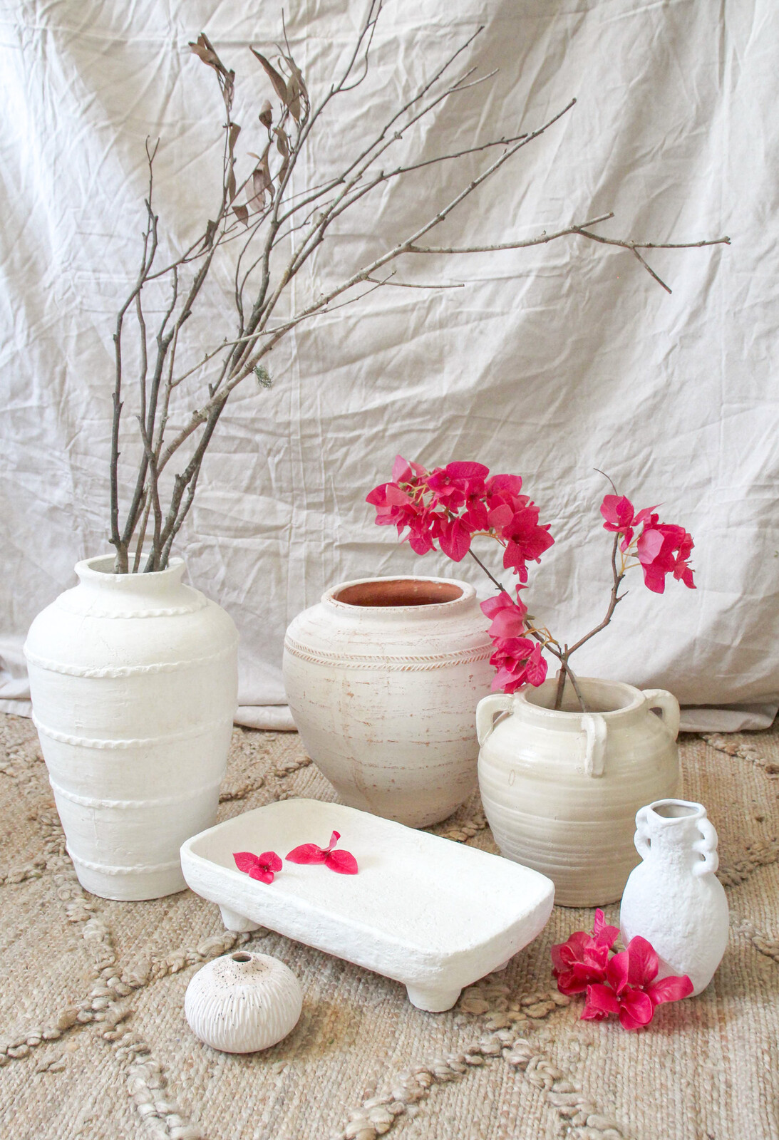 We’re a big fan of the Tray Izola. There’s something about how this piece combines a sort of Old World charm with a sleek, contemporary feel. It’s not quite rustic, and not fully modern, but it just… works. It’s made from sturdy cement - you can see it in the weight, it comes in at 35.5x20.5x9.5cm which is actually a pretty useful size for a table centerpiece or entryway vignette. One thing we really like, and that your customers will notice, is that the finish is purposefully irregular and imperfect - it looks truly hand-crafted, like something they’d discover in an offbeat European market. White always feels so crisp and versatile too - everything from scattered petals to candlesticks or trinket bowls will really pop against the chalky surface. We’ve seen this styled for plant lovers, as well as totally minimal with just a few select objects on top. We think retailers wanting to offer something with unique personality will really appreciate that no two trays are ever quite the same. This one’s got heart.