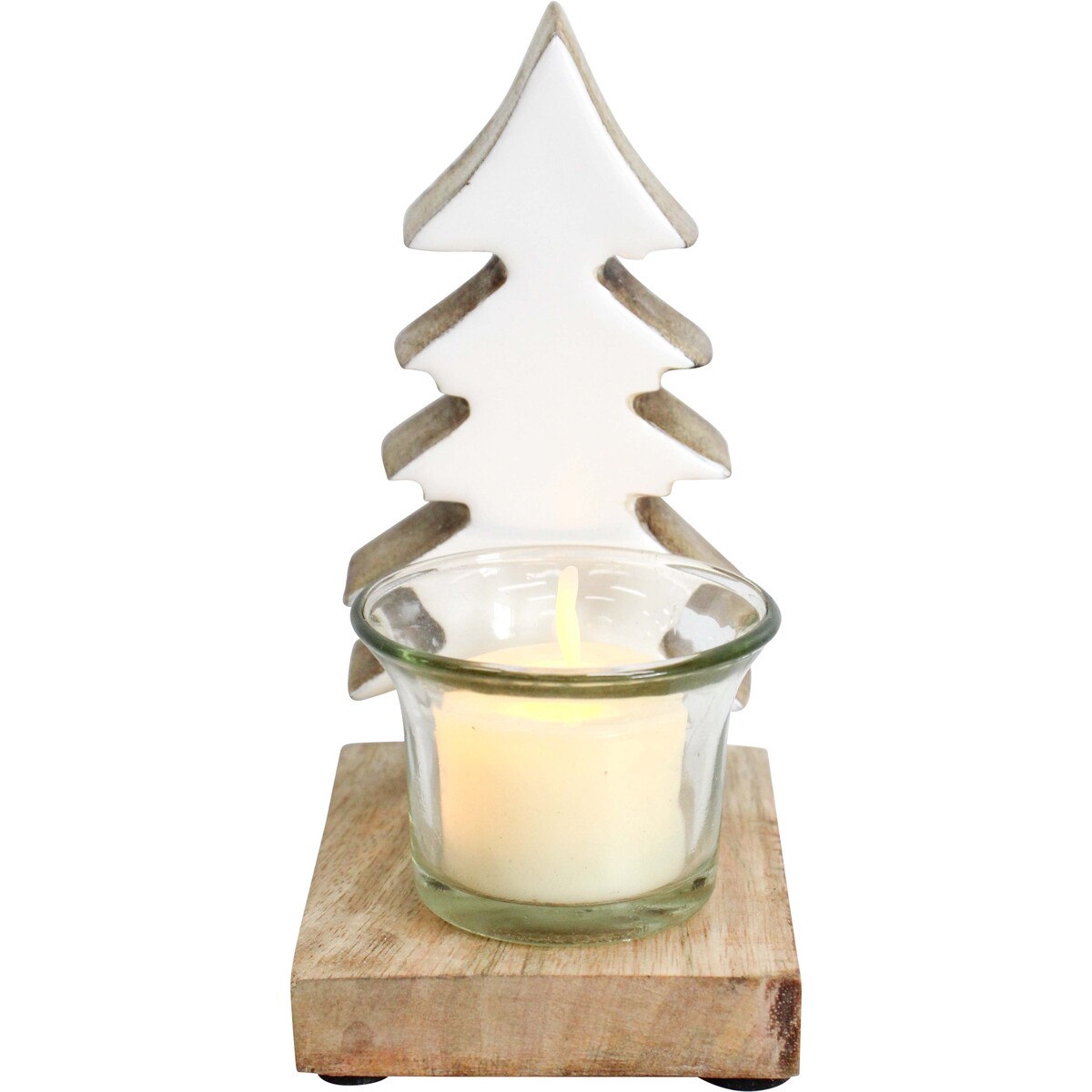 Our Tree/Tealight Holder is perfect for the festive season, whether as a subtle nod to Christmas or as a year-round rustic accent piece. This one features an earthy, white-hued tree silhouette crafted from mango wood and a clear glass cup for a small candle. The 10 x 8 x 15cm size makes it just right for coffee tables, display shelves, and shop counters.