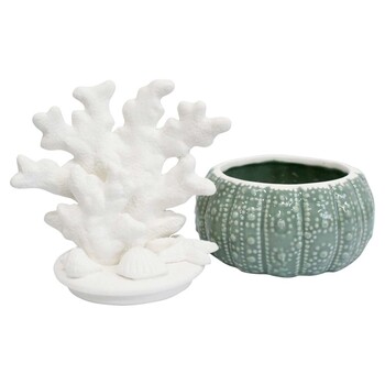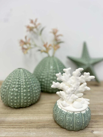 We've been loving the latest marine-inspired looks that are quietly popping up in homewares, and this Coral Trinket Box is a real stunner. The handmade finish gives it so much more character compared to machine-perfect boxes. You can see that unique touch, those little imperfections you can't get any other way – we think they really add to its charm. Measuring 9.5x9.5x13.5cm, this porcelain piece is bigger than it looks in photos - customers can really use it to store jewellery, spare change, or even their keepsakes with no problem. Or just keep it as a display piece - the seafoam blue base and white coral top look pretty lush on their own.