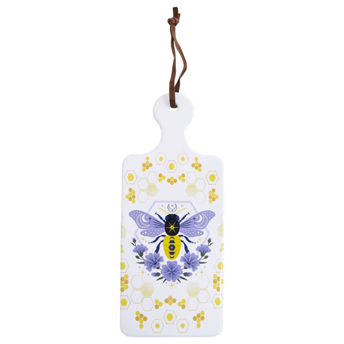 And it’s made from ceramic with cork backing, so it’s genuinely practical - not just pretty. The bee motif and those little lavender wildflowers around it, they’re quite clever - with the gold honeycomb pattern, you get something vibrant and contemporary but still classic enough to suit a huge range of settings. Even the thin vegan leather hanging loop actually gives it a bit of that rustic look if customers want to display these like wall art.