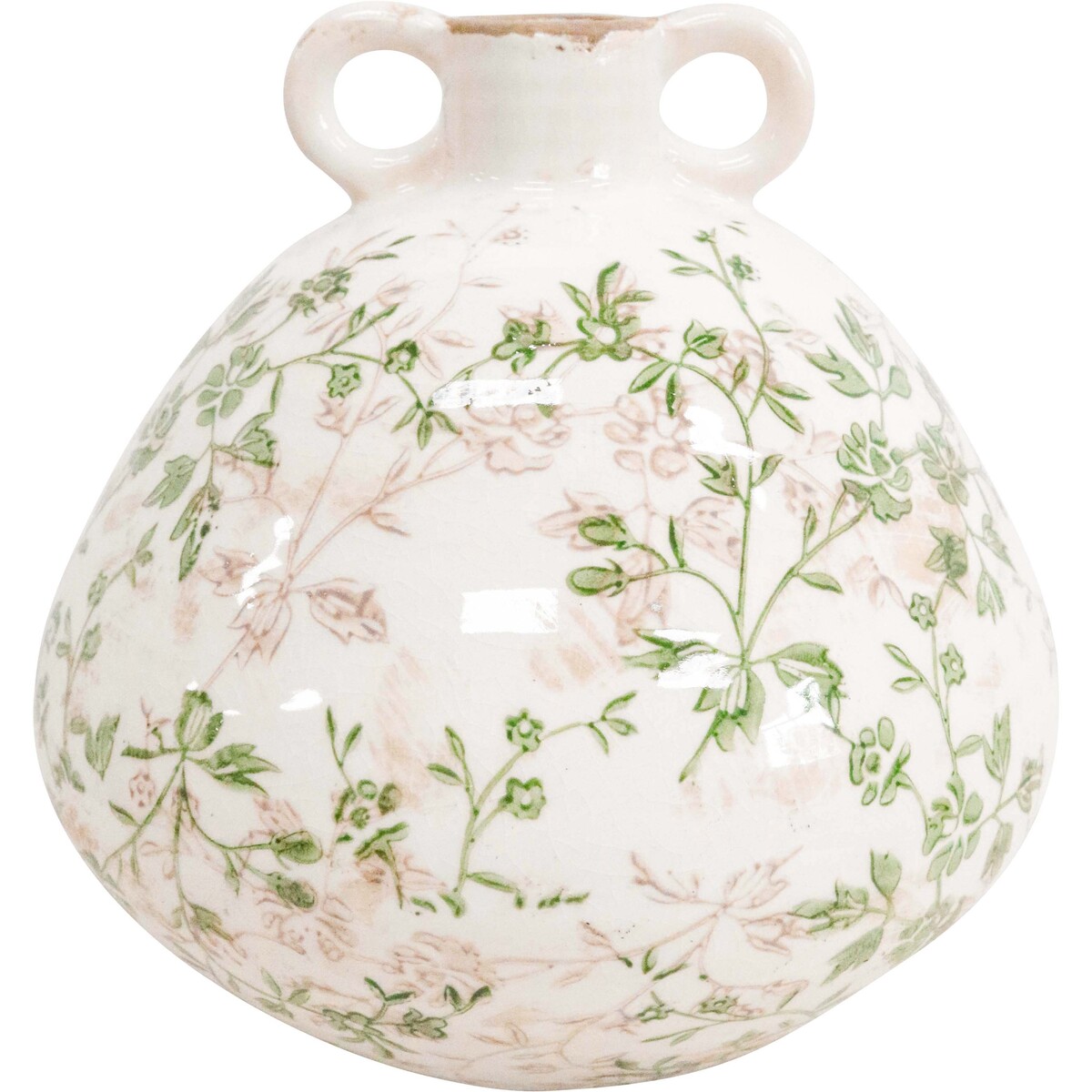 It’s crafted from ceramic and has this lovely delicate botanical print over an urn-style body with two loop handles at the neck for extra drama - you really don’t need much else near it! It mixes well with other neutrals for a coastal vibe or dresses up some minimal timber beautifully. The glazed finish has some nice imperfections and tonal detail that give it an old-world look - every single one is a little bit different so don’t panic when yours arrives!