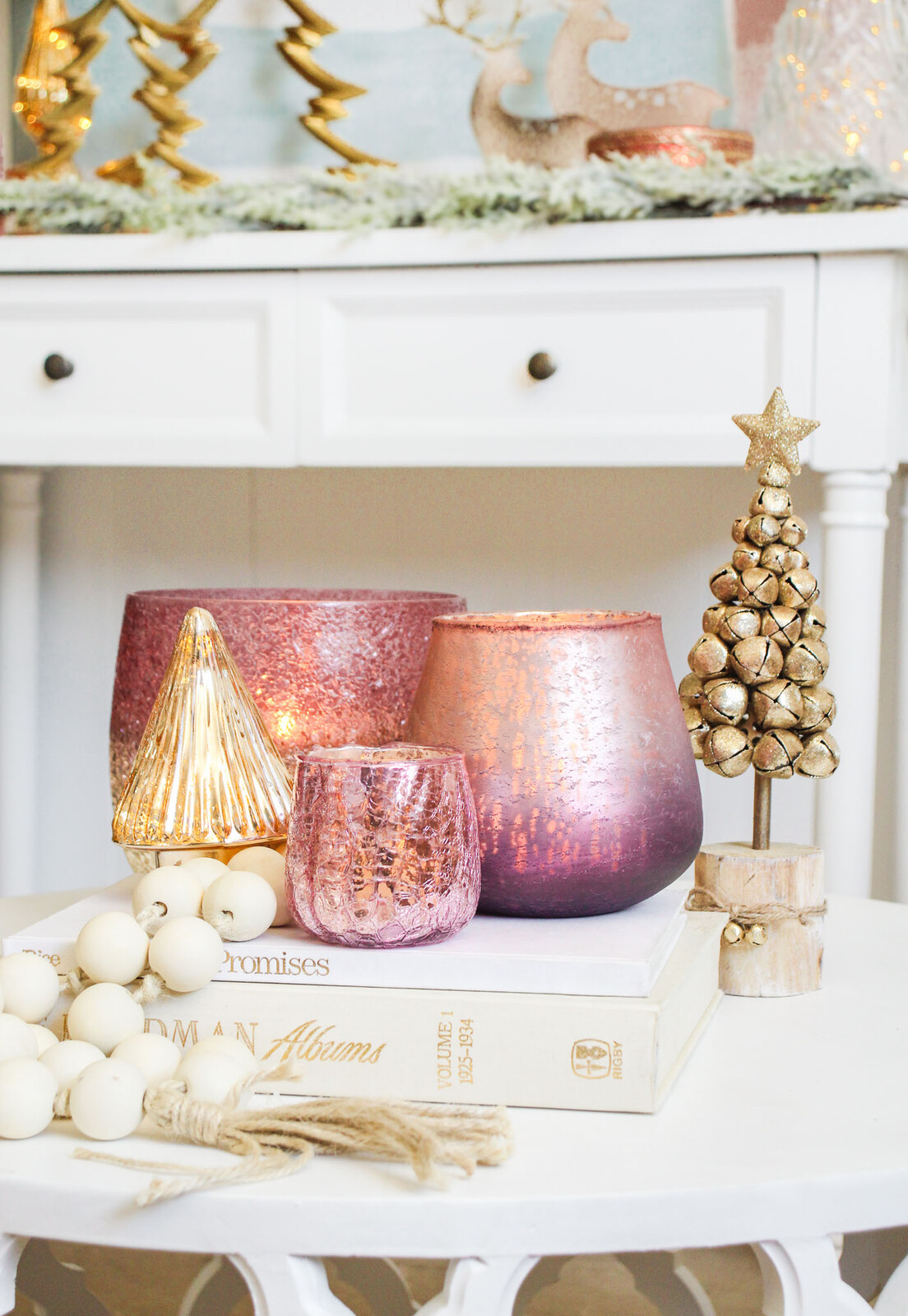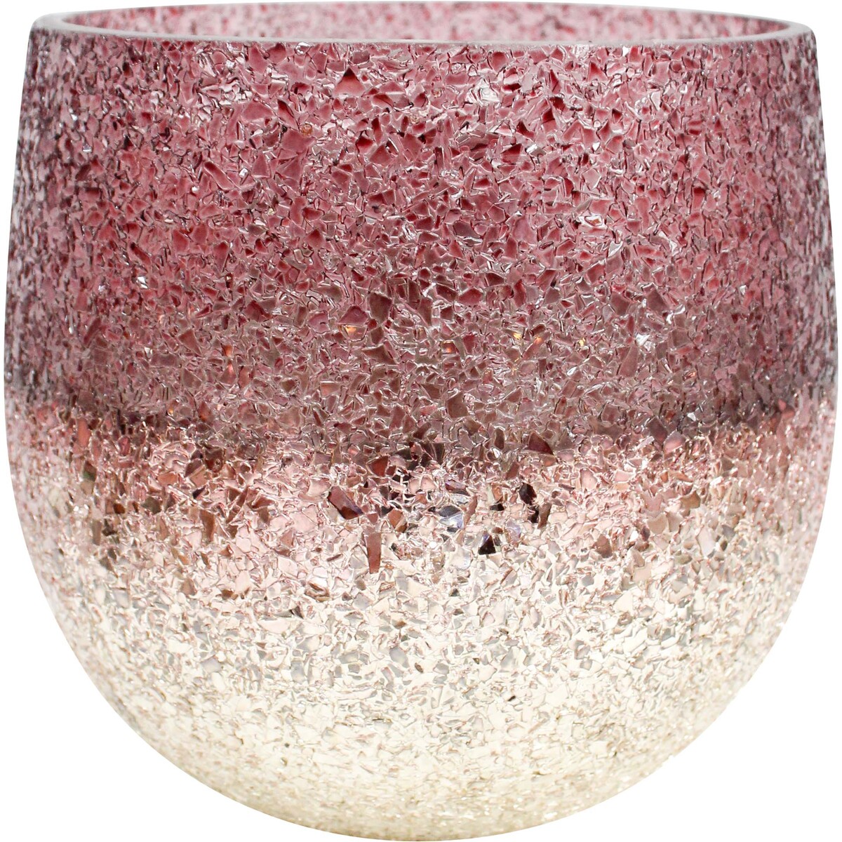 We can't get enough of this Vase XL Candle Holder in a stunning rose champagne colour. The glass finish, covered with what looks like shattered crystal, is brilliant at catching candlelight, making it a real showstopper - whether your customers fill it with a big pillar candle or use it as a vase for dried flowers. Sized at 19x19x18cm, it's the perfect way to add some sparkle and romance to any display.