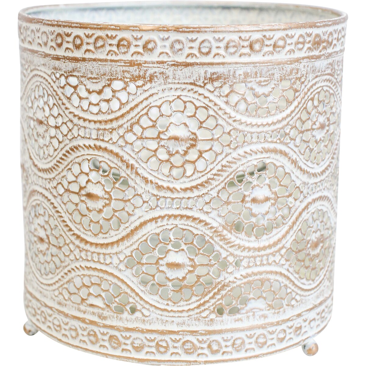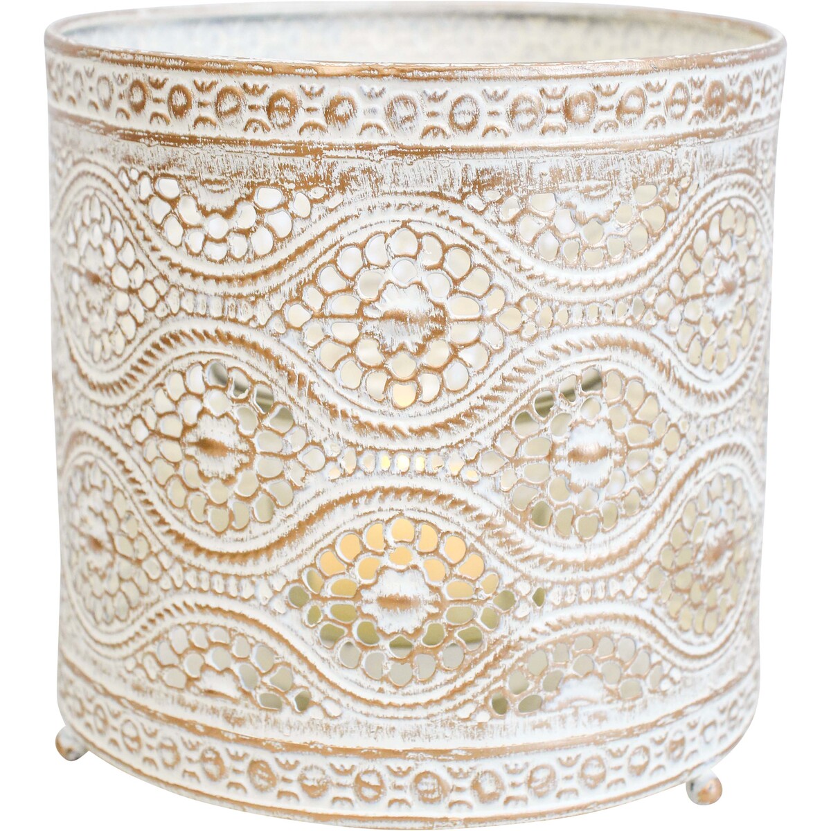 We could not recommend the Votive Moroc Med 3 more highly if your homewares, gifts, or decor shop is looking to capture a warm and timeless style. Crafted from metal and glass, its hand-finished texture gives it a charming, slightly distressed look that’s bang on for buyers after vintage-inspired pieces. It’s hard not to be taken in by its unique shape and intricate detailing - it’s this kind of unexpected patterning that makes for a real talking point in anyone’s living room, bedroom, bathroom - maybe even a centrepiece in the office or meditation space. At 13cm x 13cm x 12.5cm, it’s substantial enough to stand out on any shelf but versatile enough to fit those smaller nooks too. We’ve found these blend beautifully with bohemian, Moroccan-inspired styling as well as contemporary decor. That combination of creamy white, gentle golds, and natural metal tones lets ambient candlelight really glow through the glass panels - giving this votive an understated elegance any time of day. Every piece has its own little quirks - you’ll notice some minor imperfections or variations due to the hand finishing but we feel that only adds to the character.