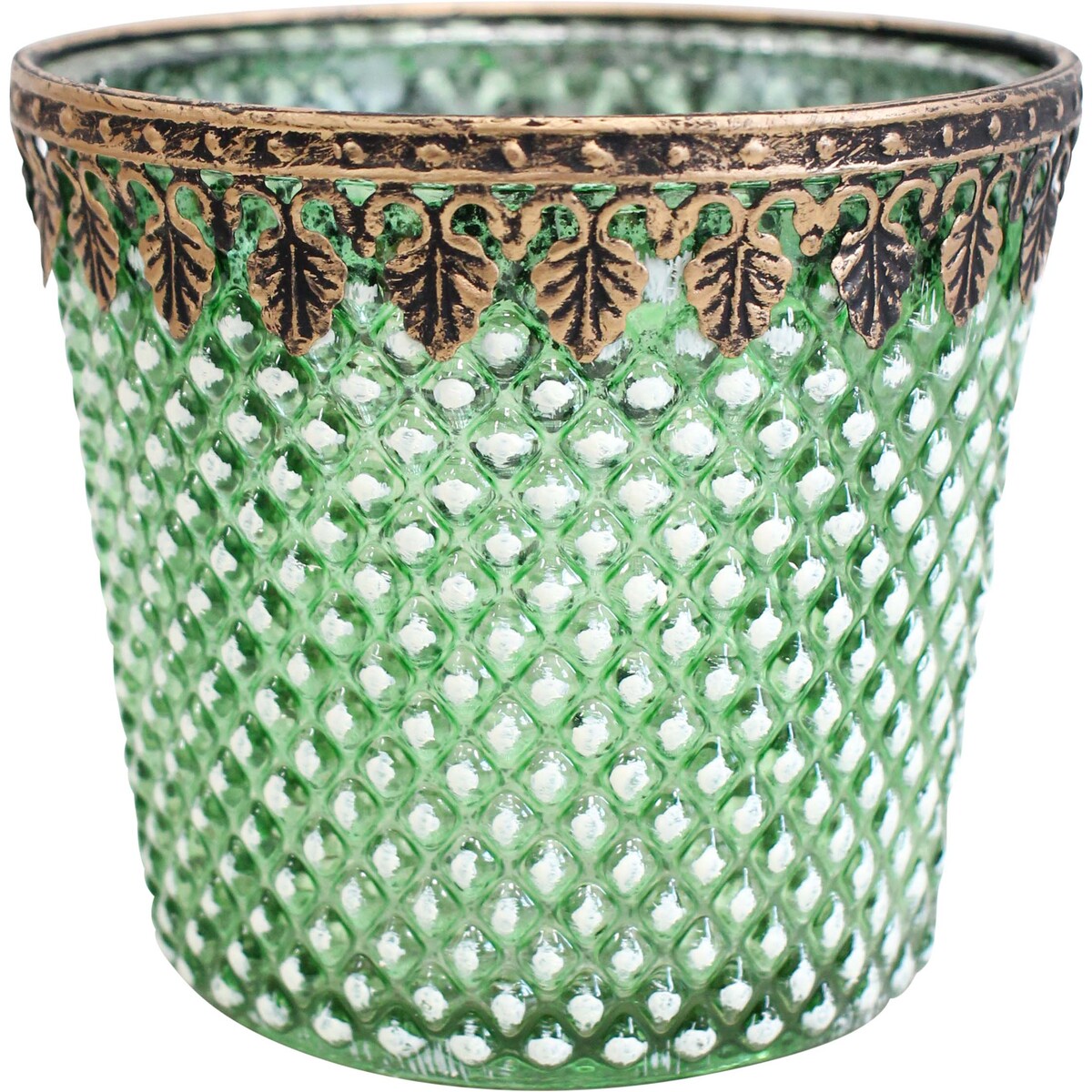 We especially love how that raised geometric pattern runs through it and the antique-style metal rim with leaf details up top. It’s got a bit of that old-world elegance without being too much for modern homes or offices. Of course, with glass and metal construction, you’re getting reliable build quality for repeat sales - these have real presence.