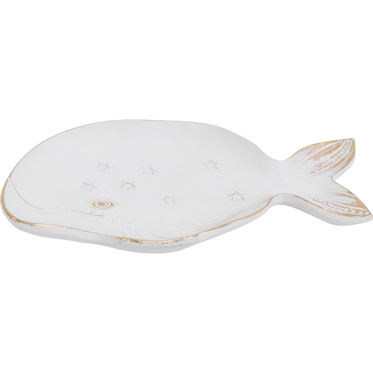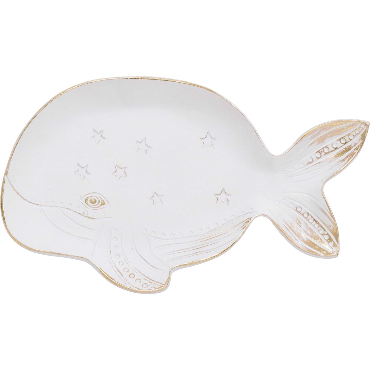 This is a bit of a standout, isn't it? A stylish and incredibly versatile decor piece that could work well in all sorts of settings. The Whale Dish really does have a way of capturing attention without dominating the space. The resin build gives it a sturdy but lightweight feel, so whether it's placed on a hallway console or on an office desk as a catchall tray, it looks right at home. And the pale neutral finish makes it surprisingly adaptable to contemporary, coastal, or classic interiors - your customers can style this with seashells, pop a ring or two in it, or simply let the beautiful gold-rimmed details speak for themselves. It measures 20x12.5x2cm - so we aren't talking about a giant statement tray here. This is something subtle but impactful enough to draw customers who just want something that 'fits'. Oh, and because these are all handfinished pieces, you will see natural variation in colour and finish. That makes each one unique - and yes, this is by design rather than fault!