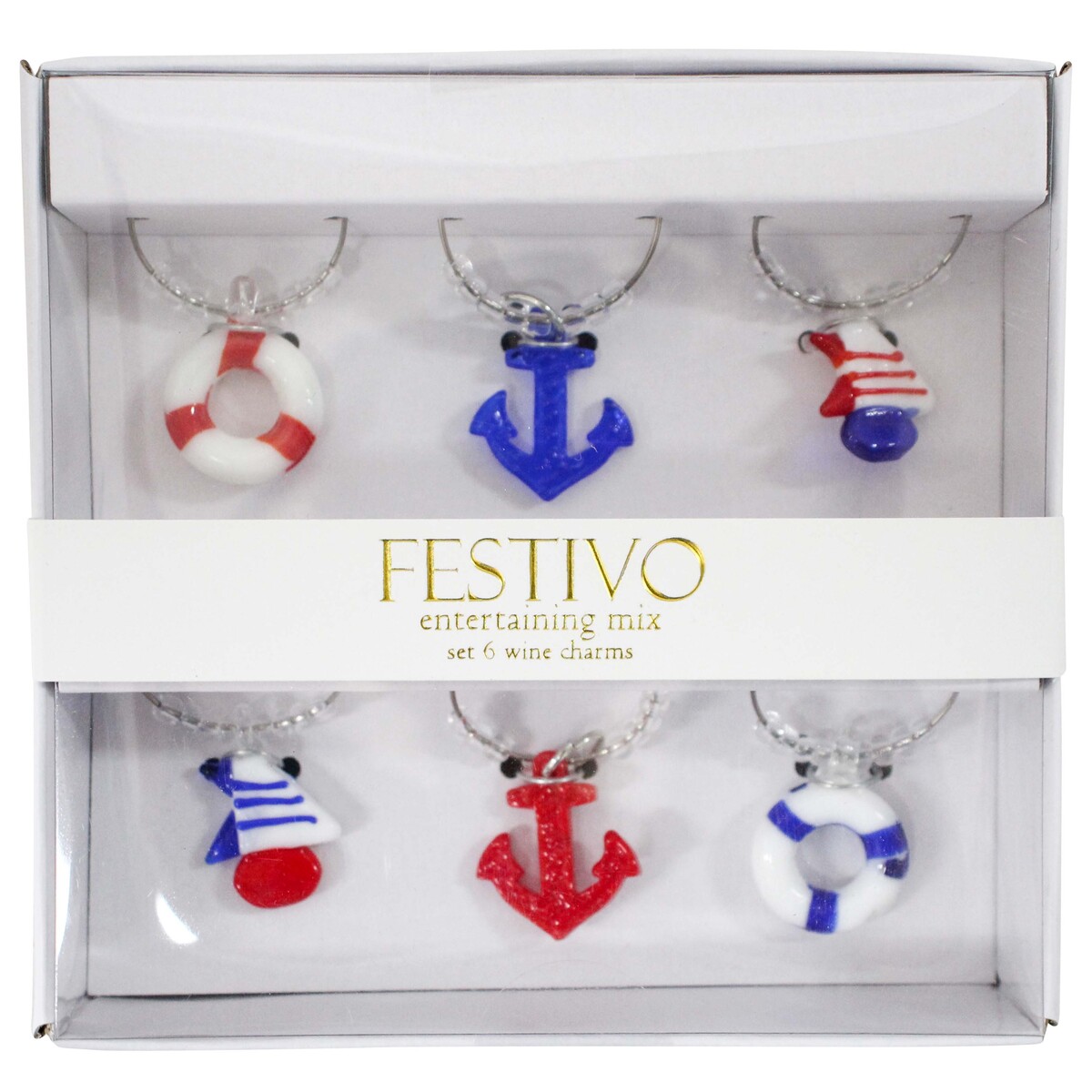 We are huge fans of these Wine Charms S/6 Nautical in our range - homewares and giftware retailers should definitely be considering adding them to their stock for a fun, playful, and practical addition to entertaining. Each set includes six charms crafted from glass (13X12.5X2.7cm), each designed with a nautical touch in bold b’’ colours - anchors, lifebuoys, and sailboats - there’s something really sweet about these. We love the potential for customers to use these at their next dinner party to keep track of whose wine glass is whose. These wine charms also make a memorable gift or practical favour for parties and events. Our charm sets could easily become a staple piece in your shop’s glassware accessory section or they can be styled together as a main feature on your display tables for entertaining ranges. Packaging is not classified as part of the product and will not be credited.
