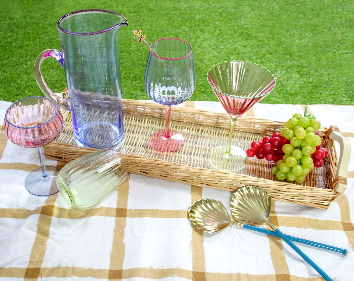 You know those blue days? Not the sad ones, the cloudless ones - that’s what comes to mind when we see these 600ml Wine Glasses. The 'Blue Tingle' really lives up to its name, with rippled blue glass and a blushing pink stem that mimics the hue of chilled cheeks after a day in the sunshine. It’s such a unique piece - it would suit anyone who has a feminine edge to their decor but feels bold enough to play with colour for their party glassware.